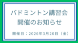 三原市バドミントン協会では、技術向上の為YONEXの選手をお呼びして講習会を開催します。多数のご参加をお待ちしております。▶日 時:2026年3月20日(金)祭日▶時 間:9:...
